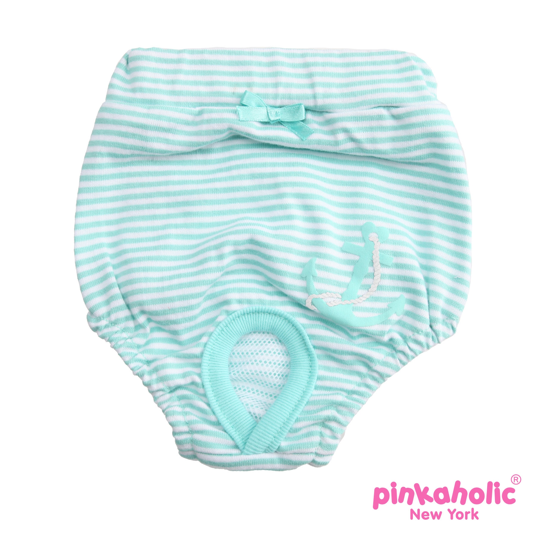 Wanneer je teefje loops is dan kan dit o.a. vervelende bloedvlekken opleveren en dat willen we niet. Daarom heeft Pinkaholic loopsheidbroekjes gemaakt die prettig te dragen zijn en waarin je een maandverbandje kan leggen. Ook kan het bescherming bieden tegen het ongewenst bezwangeren. Het broekje is rondom uitgevoerd met elastiek waardoor het op z'n plaats blijft en is gemaakt van 100% katoen. Het gat is uiteraard voor de staart. Uitgevoerd in blauw met een grappige ankerprint.